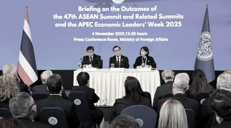 เมื่อวันที่ 4 พฤศจิกายน 2568 นายสีหศักดิ์ พวงเกตุแก้ว รัฐมนตรีว่าการกระทรวงการต่างประเทศ นำการบรรยายสรุปเกี่ยวกับผลการเข้าร่วมการประชุมสุดยอดอาเซียน ครั้งที่ 47