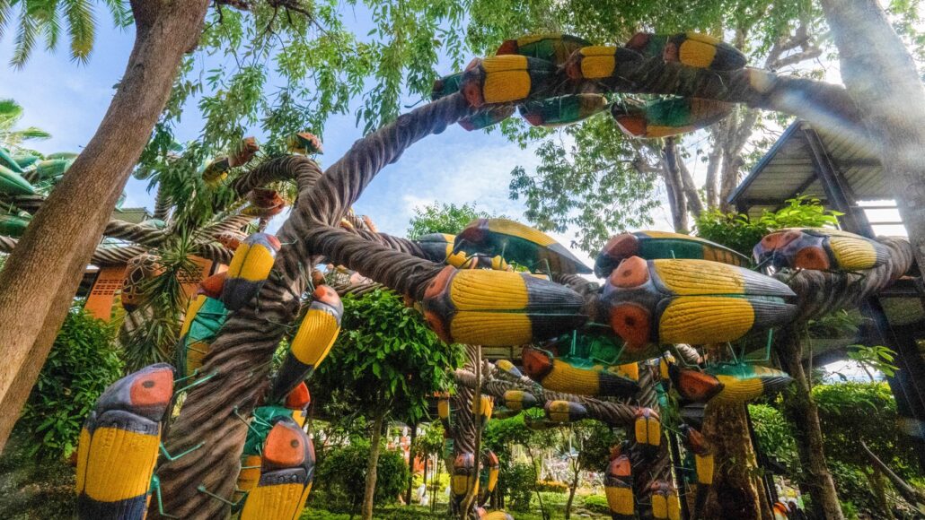 ภายในสวนยังจัดพื้นที่สำหรับการสักการะสิ่งศักดิ์สิทธิ์เพื่อความเป็นสิริมงคลในช่วงปลายปี ไม่ว่าจะเป็น รูปปั้นตัวแทนพระพุทธศาสนาจากหลากหลายนานาชาติ,พระ 9 วัด,องค์พระพรหม,พระพิฆเนศ,พญานาค และ “พิพิธภัณฑ์พระพุทธคุณ” แหล่งรวมเรื่องราวพระพุทธศิลป์อันทรงคุณค่า อีกหนึ่งจุดที่ไม่ควรพลาดคือ “โซนพีระมิด” แลนด์มาร์กสำคัญแห่งใหม่ที่นักท่องเที่ยวให้ความสนใจอย่างต่อเนื่อง