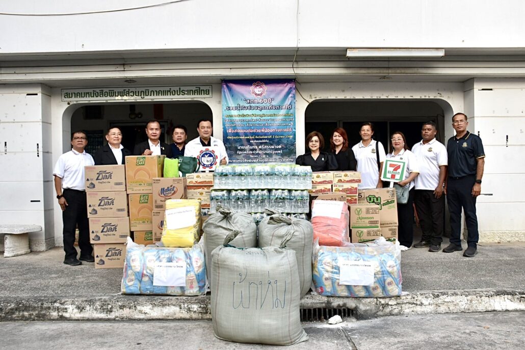 สมาคมหนังสือพิมพ์ส่วนภูมิภาคแห่งประเทศไทย (สภท. 60 ปี) ได้เปิดรับบริจาคเฉพาะในกลุ่มสมาชิกและผู้ที่รู้จักคุ้นเคย เพื่อร่วมกันบรรเทาความเดือดร้อนของผู้ประสบภัยในครั้งนี้ โดยสิ่งของทั้งหมดจะถูกส่งมอบผ่าน ดร.นภินทร ศรีสรรพางค์ รัฐมนตรีประจำสำนักนายกรัฐมนตรี ซึ่งมอบหมายให้ ดร.วีณา ศรีสรรพางค์ ประธานที่ปรึกษาชมรมชาวใต้ราชบุรี เป็นผู้แทนรับมอบสิ่งของดังกล่าว และเพื่อจัดส่งต่อด้วยรถบรรทุกของตลาดศรีเมืองราชบุรี ไปยังพื้นที่ประสบภัยในภาคใต้