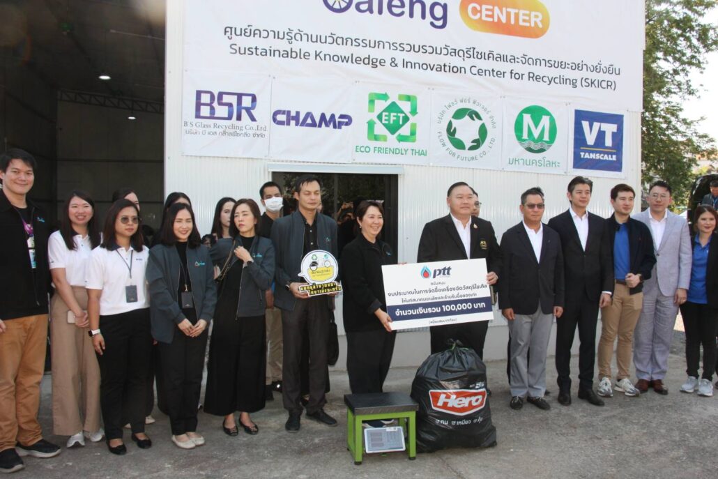 สนับสนุนโครงการได้จัดกิจกรรม เยี่ยมชมศูนย์ความรู้ด้านนวัตกรรมการรวบรวมวัสดุรีไซเคิล และจัดการขยะอย่างยั่งยืน (SKICR) ณ ศูนย์การค้าเซียร์ รังสิต และโรงแรมเอเซียแอร์พอร์ท โดยมีผู้บริหารและผู้แทนจากองค์กรภาคีต่างๆ อาทิ PTT Group (ปตท) และกลุ่มพันธมิตร เข้าร่วมงานอย่างพร้อมเพรียงเพื่อร่วมแลกเปลี่ยนองค์ความรู้ด้านการจัดการขยะอย่างยั่งยืนและส่งเสริมการพัฒนาสิ่งแวดล้อมอย่างเป็นรูปธรรมและแสดงถึงเจตนารมณ์ความร่วมมือในการพัฒนาระบบการจัดการวัสดุรีไซเคิล ให้มีประสิทธิภาพตลอดจนผลักดันการดำเนินงานด้านเศรษฐกิจหมุนเวียน (Circular Economy) ให้เกิดการขับเคลื่อนอย่างยั่งยืน และนำเสนอเทคโนโลยีนวัตกรรมและกระบวนการคัดแยกขยะที่มีมาตรฐาน เพื่อแสดงความร่วมมือจากทุกภาคส่วนในการผลักดันภารกิจด้านสิ่งแวดล้อมให้ก้าวหน้าพร้อมศึกษาจุดทิ้งขยะของศูนย์การค้าเซียร์ รังสิต เพื่อเป็นตัวอย่างของการจัดการขยะตั้งแต่ต้นทางอย่างมีระบบ