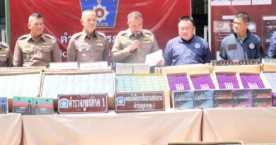 ภัทรศรีวงษ์ชัย ผบก.สอท.5 พร้อมเจ้าหน้าที่ที่เกี่ยวข้องร่วมแถลงข่าว “ตำรวจไซเบอร์ทลายเครือข่ายโทรหลอก