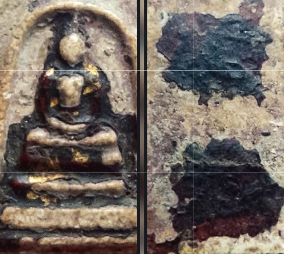 มาดูพระสมเด็จวัดระฆังพิมพ์ใหญ่องค์นี้ มีรักให้เห็นหน้าหลัง เจอแบบนี้ดูง่ายเลย ดูสีรักรู้ว่าเก่า รักหนาสีดำบางหน่อยสีแดงเลือดหมู เนื้อพระที่รักร่อนหลุดไปเห็นเนื้อเหลืองอมขาวแบบนี้แจ่มสุด ไม่มีสีรักลอกออกในเนื้อให้เห็นเป็นสีดำอยู่ในเนื้อ บอกได้เลบว่าลงรักหลังพระแห้งแล้ว ทำให้รักถนอมเนื้อพระมาถึงเรา มีชิ้นรักติดอยู่อย่าล้างออกนะ เก็บไว้อย่างนี้เห็นรักก็รู้เลยพระแท้ ด้านหลังเห็นรักอยู่2ชิ้นใหญ่ๆ เก่าเป็นธรรมชาติ ห้ามล้างออกนะแบบนี้จุดจ่ายตังค์ ข้างตอกตัดหวานเจี๊ยบสไตล์เซียนเจี๊ยบบางกรวย