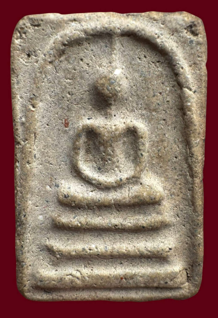 มาดูพระสมเด็จวัดระฆังพิมพ์ใหญ่ วันนี้ เห็นหลังไม่ต้องส่องหน้า เหลี่ยมใช้มานานมากหลายสิบปี เก่าเป็นธรรมชาติ เห็นขอบสีน้ำตาลดำติดเนื้อพระ จนเนื้อเน่า จากเหงื่อเข้าไปผสมเทียนที่ใช้ยึดกรอบพระ หลายปีจนเนื้อเทียนเน่าซึมเข้าไปในเนื้อพระ เนื้อที่ไม่โดนกรอบออกสีขาวนวล เป็นฝ้าของเนื้อหรือที่เรียกแป้งโรยพิมพ์ แต่จริงแล้วคือธรรมชาติ ของปูนย์เปือกหอยที่ใช้เป็นส่วนผสมหลักในพระสมเด็จ ดูด้านหน้าสวยแจ่ม ก้อนดำเม็ดแดงก้อนขาวมีหมด หลุมบ่อเล็กๆ ทั่วองค์พระ จากการล่อนหลุดของมวลสาร ข้างตอกตัด องค์นี้ตัดบานบนเหมือนพิมพ์ฐานแซม บานบนกว้างกว่าขอบล่างของพระ แบบนี้จำให้แม่น พระสมเด็จแท้ ต้องขอบตอกตัด เท่านั้นนะจ๊ะเธอ