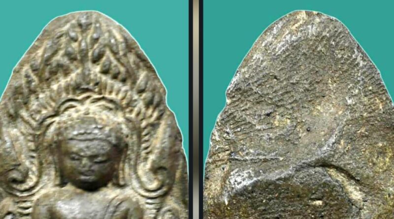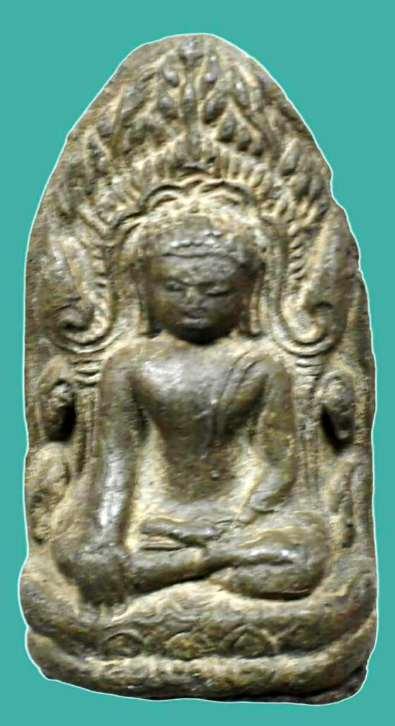 มาดูพระลือโขงเนื้อเขียว จ.ลำพูนวันนี้ ว่ากันว่า เป็นพระงดงามที่สุดของพระสกุลลำพูน เป็นพระพิมพ์เนื้อดินเผา พุทธศิลป์สมัยหริภุญไชย มักพบคราบดินสีน้ำตาลเกาะอยู่ทั่วองค์พระ ต้องบอกว่าเจ้าของเก็บพระได้ดี ไม่ล้างทำให้เห็นฝ้านวลดินกรุที่ติดองค์พระ แบบนี้ดูง่ายเลย เนื้อเขียวโดนไฟเยอะ ดินสุกเต็มที่จนเนื้อเป็นหิน หูตาจมูก แจ่มสุดสุด ด้านหลังมีรอยมือกด ลายนิ้วมือ คราบกรุดินน้ำตาลเกาะแน่น แบบนี้ห้ามล้างเก็บไว้ดู