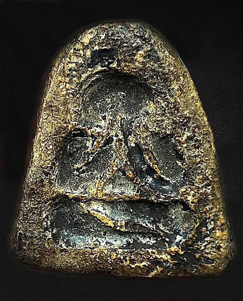 เนื้อกะลา ละเอียด นุ่มตานวลใจ รักดำแห้งสนิท ร่อนหลุดมีแผ่นทองเล็กๆ ติดอยู่ตรงร่องขา จากเดิมได้มาไม่เห็นแผ่นทอง เอาฟู่กันปัดฝุ่นออก เห็นแผ่นทองชิ้นเล็กๆ ดีใจมากๆ เคยเห็นหลวงพ่อแก้วพิมพ์ปั้นของพระอาจารย์ เดิมทีก็ไม่เห็นแผ่นทอง พอมาใช้ขึ้นคอ พระท่านมีชีวิต เศษรักทองโผ่ลขึ้นบนเนื้อ จากไอเหงื่อพระอาจารย์ ทำให้เห็นรักทอง แบบนี้แท้เลยนะเธอ คราบฝุ่นความเก่าบังรักทองไว้ นี่แหละทำให้ เราต้องเดินหาพระ พระแท้ยังมีให้เรา เก็บอีกมากมาย ขอให้เรารู้จักท่าน เดี๋ยวก็เจอ ด้านหลังพระ พิมพ์หลังแบบ เห็นรอยเหยี่ยวย่นของเนื้อพระสีน้ำตาล จากรักที่ร่อนหลุดไปแห้งสนิท หลุดเป็นแผ่น แบบนี้ รักเกินร้อยปี ถ้าเจอมีฟองอากาศ รักละลายวางนะ ของฝีมือใช้อบ เร่งให้เก่านะจ๊ะเธอ