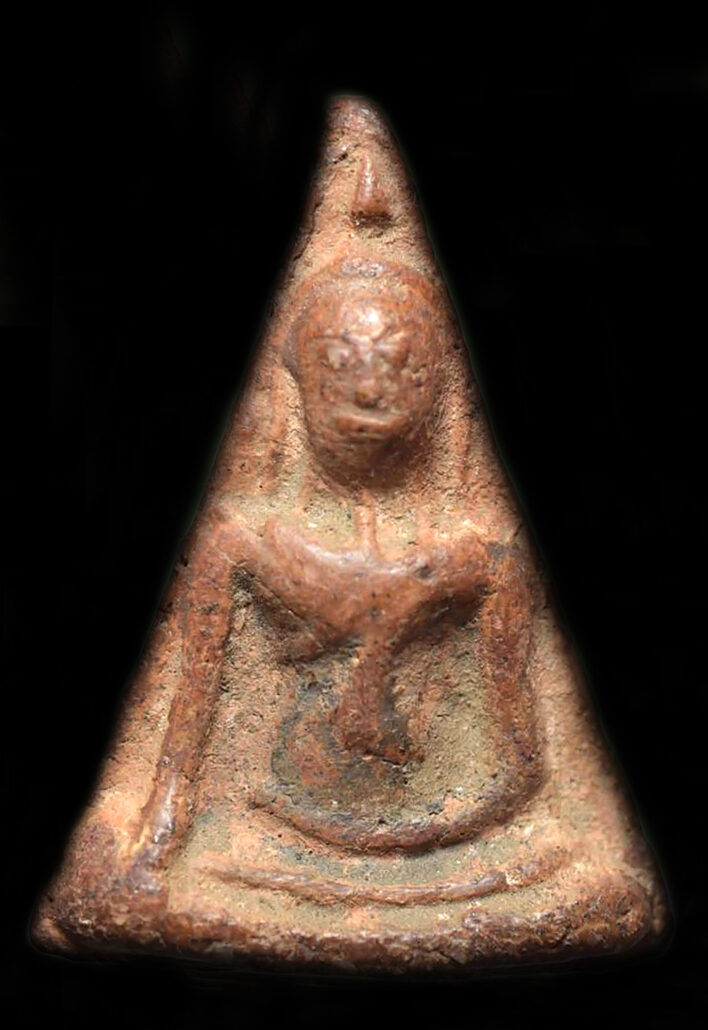 นางองค์นี้สีหม้อใหม่ ดินเริ่มสุก มักพบราดำบนเนื้อพระ เพราะเนื้อยังอ่อน อยู่ในกรุมาหลายร้อยปี ฝนตกน้ำท่วม ร้อนชื้นเปียกแห้ง ผ่านมาหมด ถ้าสีเขียวแดง โดนไฟเต็มที่ จนจะเป็นหินแล้ว ราดำกินเนื้อพระไม่ได้ ฝ้านวลดินแบบองค์นี้ เป็นธรรมชาติ ห้ามล้างนะ เก็บไว้เป็นตัวช่วยในการดู พระเก่าหลายร้อยปี มักพบฝ้าดินเช่นนี้