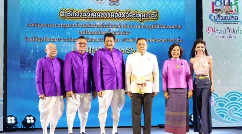 นายเอกวิทย์ มีเพียร ผู้ว่าราชการจังหวัดปทุมธานี ร่วมกิจกรรมภูมิใจแต่งไทยทั้งแผ่นดิน โดยมี