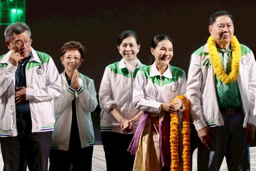 ร่วมขึ้นเวทีปราศรัย ณ ลานจัดมหกรรมสินค้า ตำบลคู้ยายหมี เขตเทศบาลสนามชัย จังหวัดฉะเชิงเทรา