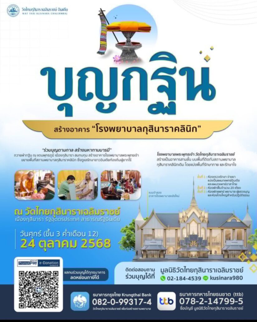 สร้างอาคาร “โรงพยาบาลกุสินาราคลินิก”