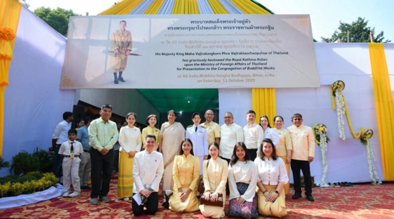 On 11 October 2025, Ms. Sasirit Tankulrat, Deputy Permanent Secretary, Ministry of Foreign Affairs of Thailand, presided over the Presentation Ceremony of the Royal Kathina Robes at All India Bhikkhu Sangha, Gaya, Bihar, India. His Majesty King Maha Vajiralongkorn Phra Vajiraklaochaoyuhua of Thailand has graciously bestowed the Royal Kathina Robes upon the Ministry of Foreign Affairs of Thailand for the presentation to the congregation of Buddhist Monks. The Ceremony was led by Phra Phromvajiravongs, Chairperson of the Thai Buddhist Missionary in India–Nepal and Abbot of Wat Thai Buddhagaya, together with Bhikkhu Pragya Deep, Abbot of the All India Bhikkhu Sangha, and members of the Sangha.