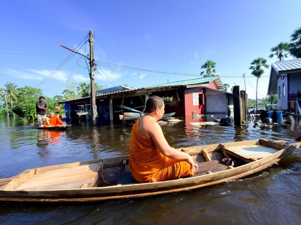การลงพื้นที่ในครั้งนี้ พระเดชพระคุณท่านได้มุ่งหน้าไปยัง บ้านโค้กแห้ว อำเภอกระแสสินธุ์ จังหวัดสงขลา ซึ่งเป็นหนึ่งในพื้นที่ที่ได้รับผลกระทบอย่างหนักจากมวลน้ำที่ท่วมขังสูง ส่งผลให้บ้านเรือนจำนวนมากจมอยู่ใต้น้ำ การสัญจรเป็นไปด้วยความยากลำบาก เส้นทางคมนาคมหลักถูกตัดขาด รถยนต์ไม่สามารถเข้าถึงได้ จำเป็นต้องใช้เรือพายในการเดินทางเข้าออกหมู่บ้านเท่านั้น