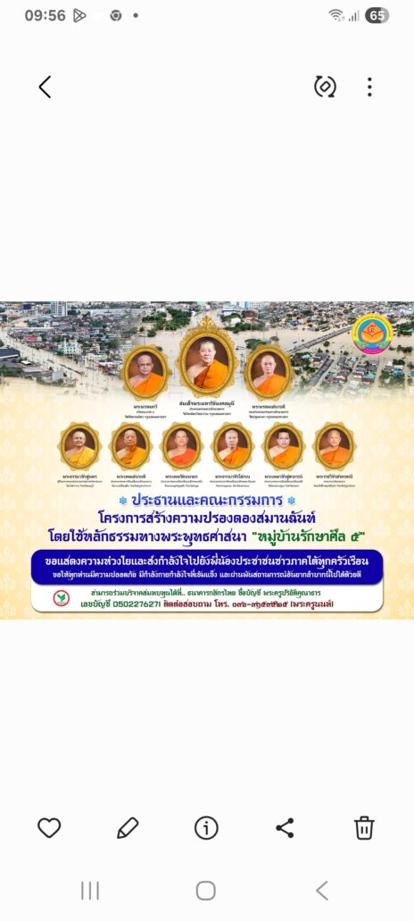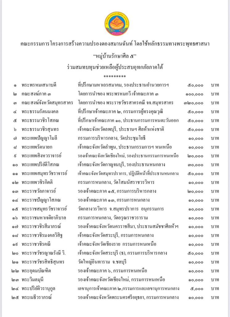 โครงการหมู่บ้านศีลห้า ระดมกำลังช่วยน้ำท่วม รวมกับสมเด็จวัดโพธิ์ ได้เงินกองโตถึง 2 ล้าน ช่วยซับน้ำตาชาวหาดใหญ่ หลวงพ่อพระพรหมเสนาบดี