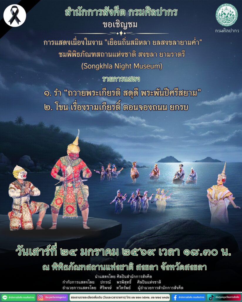 ยลสงขลายามค่ำ” ระหว่างวันที่ 23 – 24 มกราคม 2569 ตั้งแต่เวลา 17.00 น. ณ พิพิธภัณฑสถานแห่งชาติ