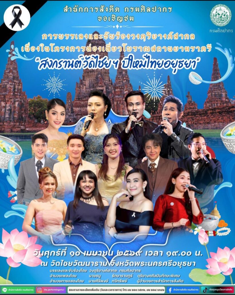 กรมศิลปากร กระทรวงวัฒนธรรม ขอเชิญร่วมงาน “สงกรานต์วัดไชยฯ ปีใหม่ไทยอยุธยา” สืบสานประเพณีสงกรานต์วิถีไทย สรงน้ำพระ ก่อพระเจดีย์ทราย เล่นสาดน้ำตามวิถีไทย ในบรรยากาศงานวัด ย้อนยุค ระหว่างวันที่ 9 – 13 เมษายน 2569 ณ โบราณสถานวัดไชยวัฒนาราม อุทยานประวัติศาสตร์พระนครศรีอยุธยา จังหวัดพระนครศรีอยุธยา